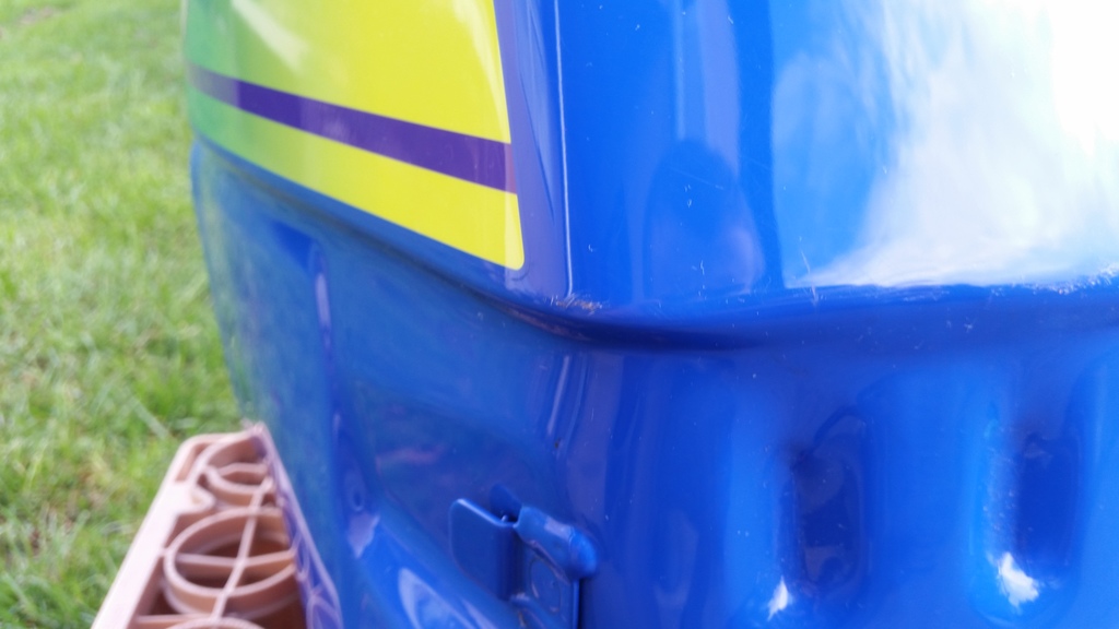 Lackabsplitterung auf der linken Seite beim Benzinhahn.