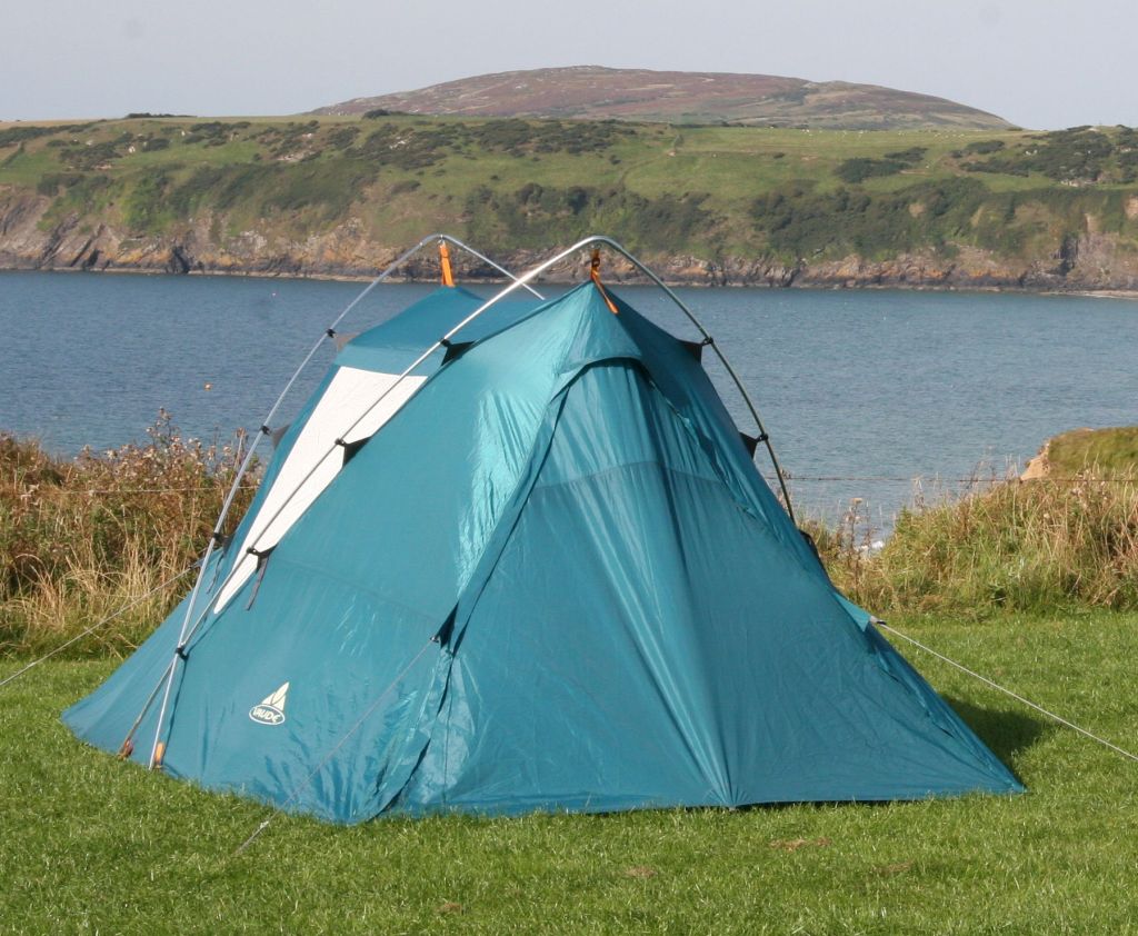 Biete ein sehr praktisches, relativ leichtes Familienzelt mit geräumigem Vorzelt und Stehhöhe in der Apside.