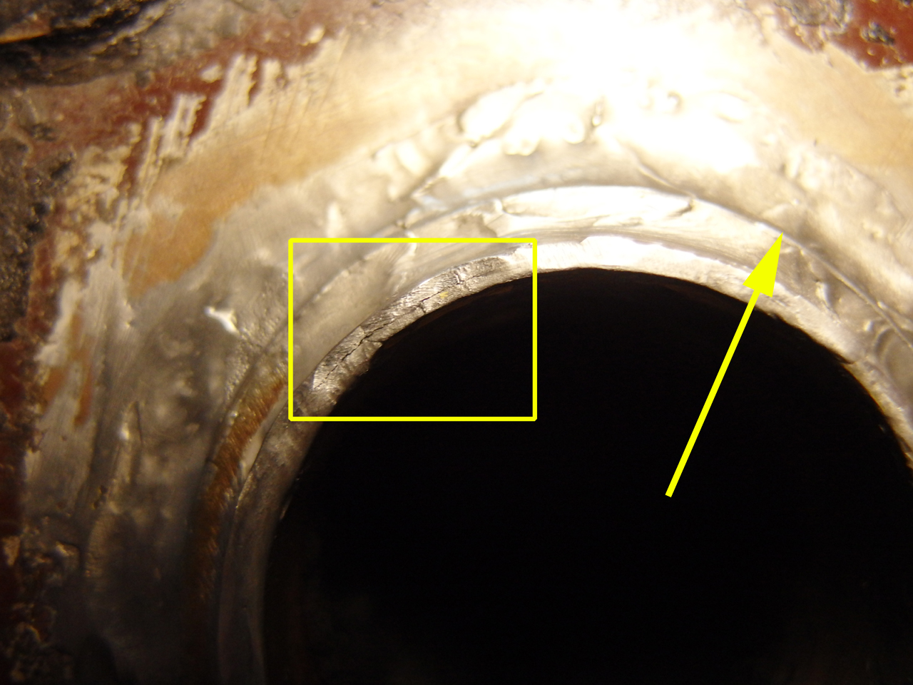 Da sifft es raus. Die Stellen beim gelben Pfeil hab ich halbwegs hingekriegt hin... Messingbleche großflächig drüber und gut ist (das Photo ist älter, noch ohne Messingbleche). Da ist´s dann auch nicht schlimm, wenn das Lot nicht richtig zwischen den "Kragen" (gelber Pfeil) und das Blech vom Tankboden ziehen kann, weil noch etwas Sprit dazwischensteckt. Wie gesagt: Großflächig Flicken drüber und gut ist´s.