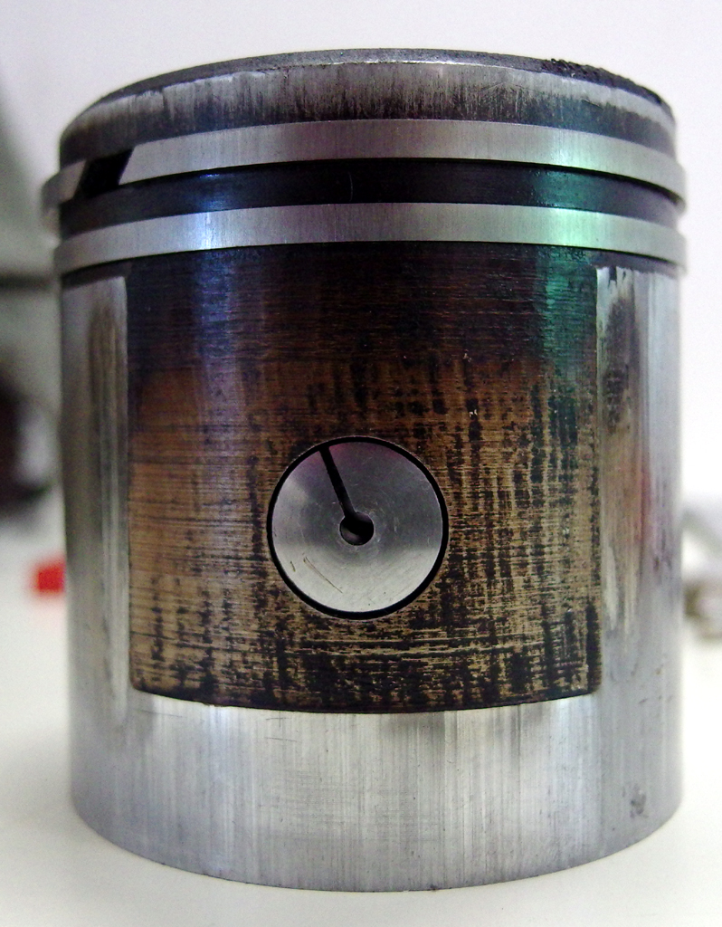 scheint nur gedreht nicht mal gehont zu sein, noch dazu wellig, oder man müßte gucken ob der Zylinder in diesen Bereichen Rippen hat, an denen der Zylinder hier bei Hitze nach innen gewachsen ist.