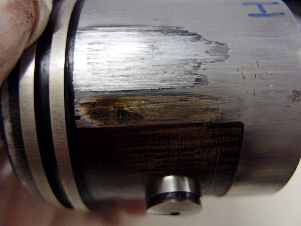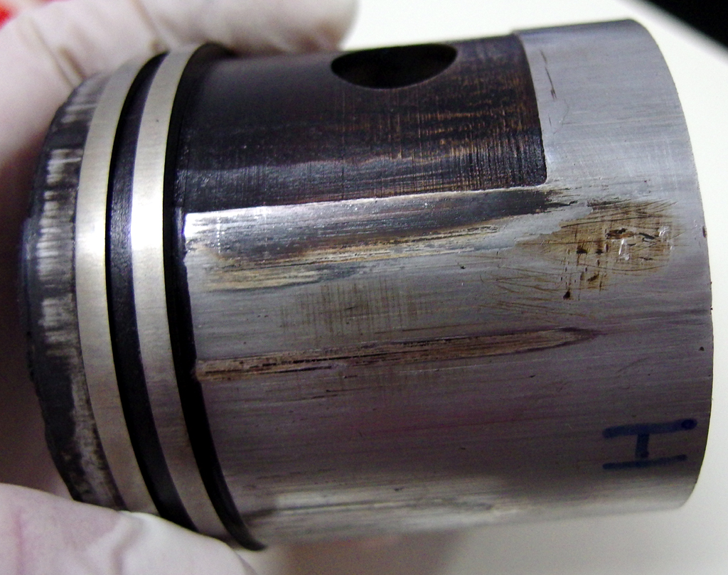 scheint nur gedreht nicht mal gehont zu sein, noch dazu wellig, oder man müßte gucken ob der Zylinder in diesen Bereichen Rippen hat, an denen der Zylinder hier bei Hitze nach innen gewachsen ist.