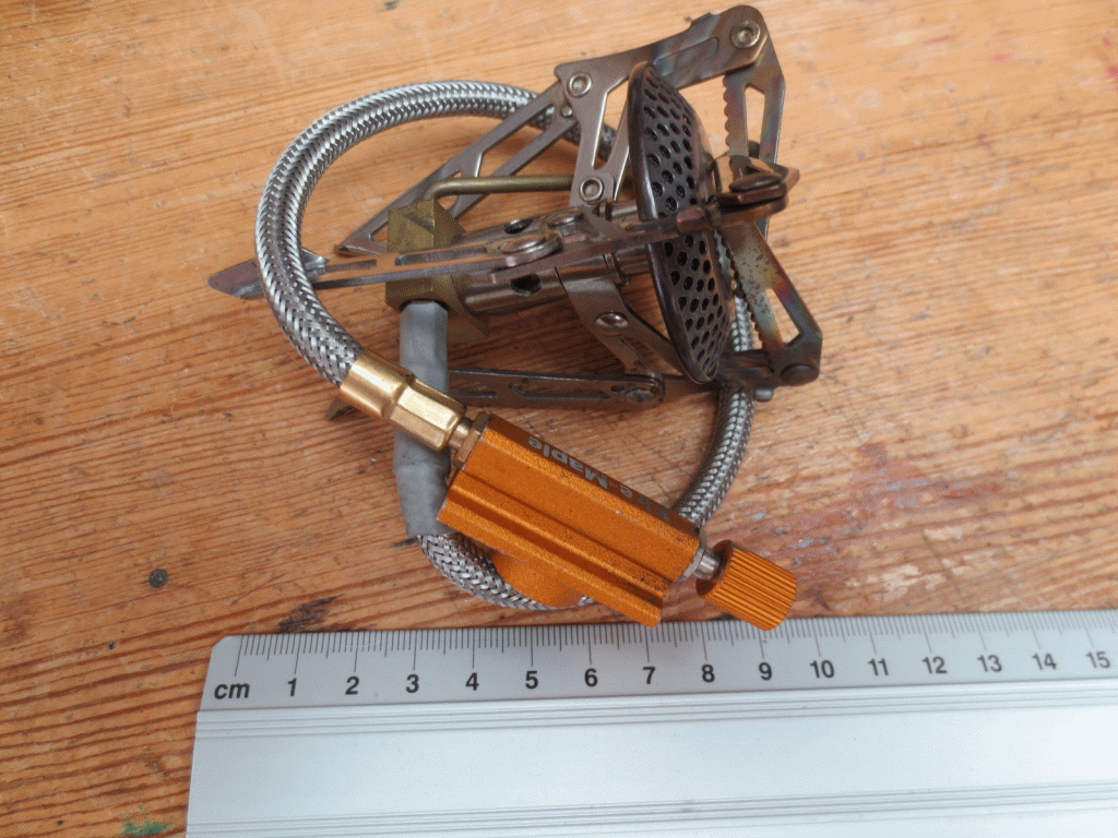 - Ich habe einen Umfülladapter für MSF-1a auf Schraubkartusche dabei. Der ist winzig, und ich kann meine leere Schraubkartusche öfter nachfüllen. Dann funktioniert das auch mit direkt aufschraubbaren Kochern a la MSR Pocket Rocket.