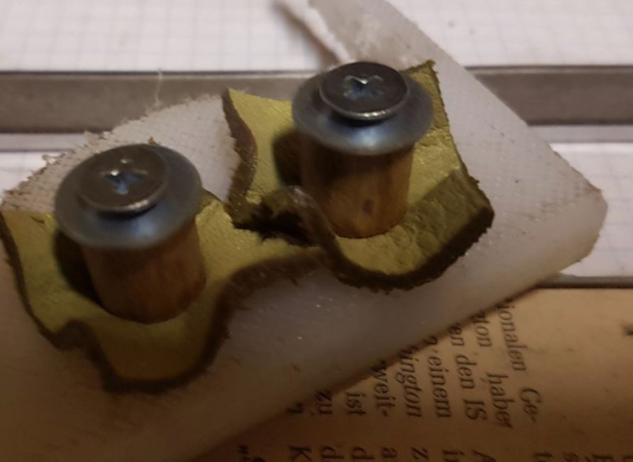 Mittlerweile stanze ich die Lederfleckchen nur aus und montiere sie leicht geölt . Die Form bekommen sie dann im Pumpenzylinder.