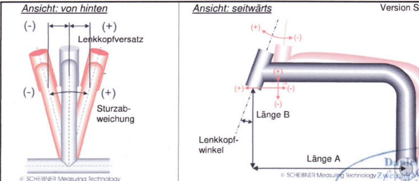 Von der Vermessung meiner SR weiß ich noch, daß da auch der Lenkkopfwinkel vermessen wurde (Länge A, Länge B).