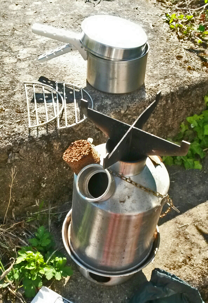Der KellyKettle kocht 2,5 Pint Wasser in Nullkommanix, mit fast genausoviel Brennstoff, ein Spaßmacher.