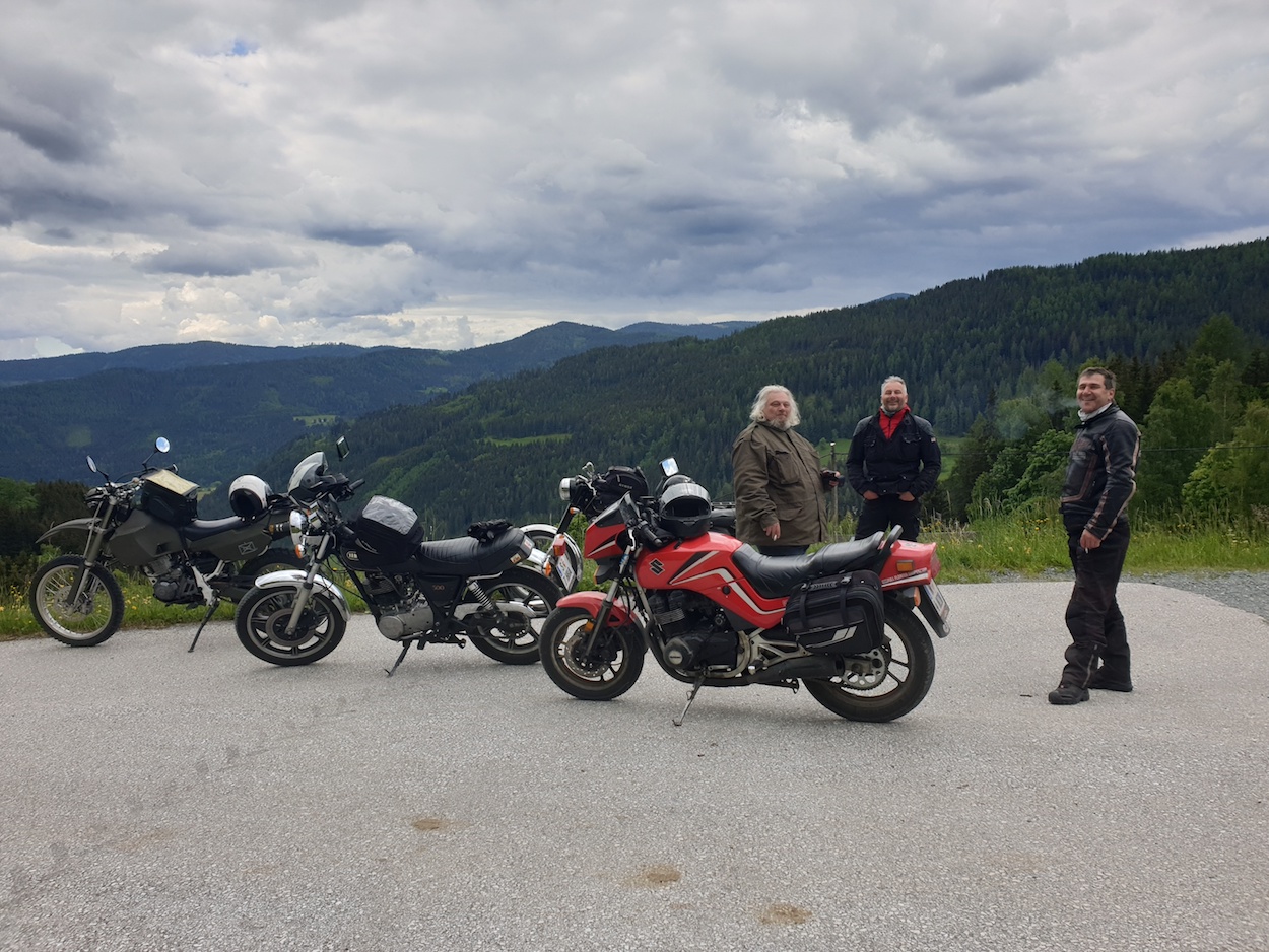So, das zufällige Treffen von älteren Motorrädern mit österreichischer Zulassung im Großraum Oberwölz ist nun auch schon wieder vorbei. Schön wars, diszipliniert mit Abstand und ggf. Maske. Und das Wetter war auch besser als prognostiziert. Wie hat der Präsident doch so richtig gesagt: "Sch...ts Euch ned aun!"