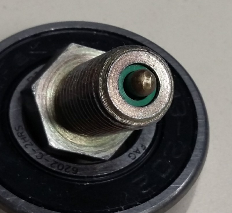 Ich hab also aus Anlass einer kleinen Motoreninspektion des ehemaligen Ersatz-Rennmotors (der jetzt wieder in meine AlltagsXT gebaut werde soll) den tropfenden Schalter in die Drehbank gespannt und zerlegt. Darin findet man durch Dauerbeölung versprödeten Kunststoff, eine Schraubenfeder aus Bronzedraht die auf einen Messingstift drückt, und den Messingeinsatz mit M4-Innengewinde, an den die Leitung zum Leerlauflichtl angeschraubt wird.