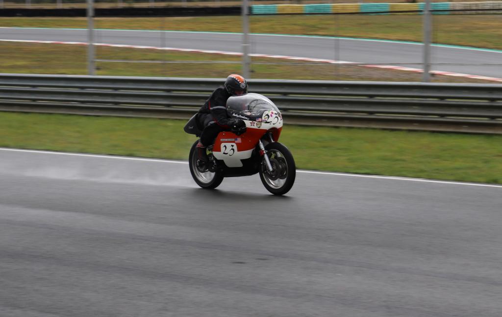 Fürs zweiStundenRennen das in Reihengruppen im Abstand gestartet wird, macht der Sepp K. den Starter, um nach dem Durchschreiten aller Startreihen selbst als Letzter aufs Moped zu steigen.