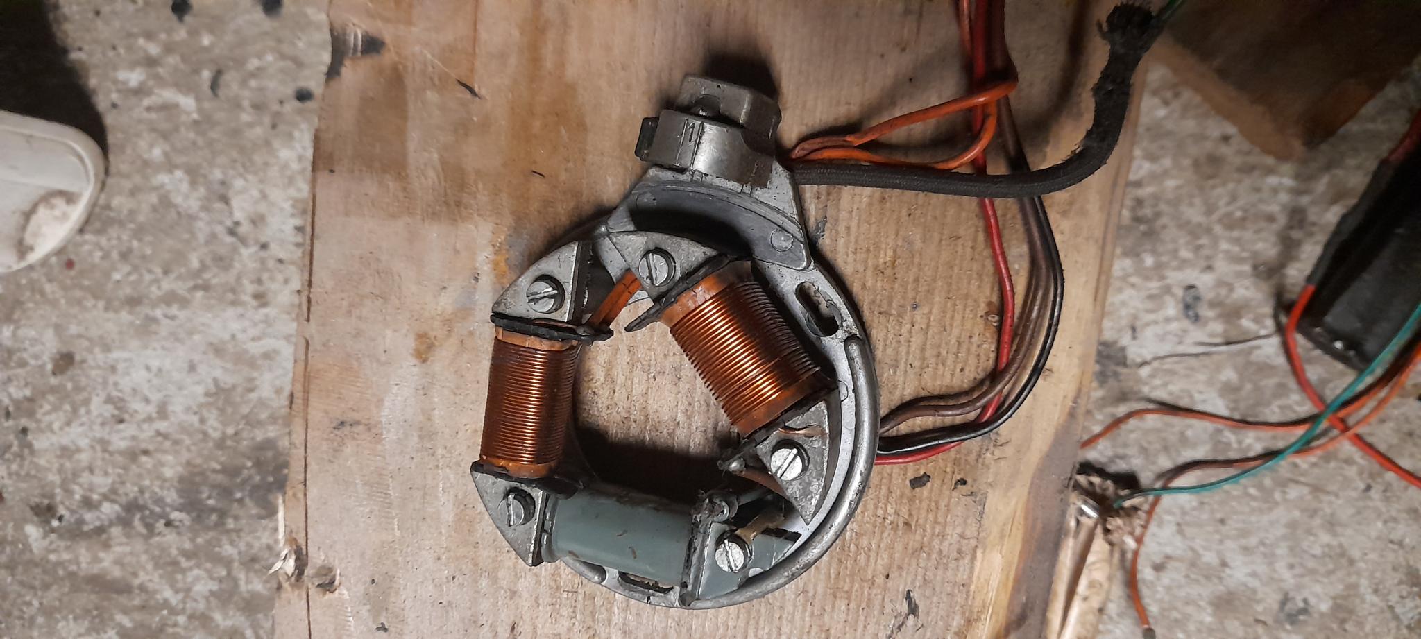 Verbaut ist eine 6 Volt Lichtanlage mit ungeregelter Lichtspule für Licht und Hupe und einer Ladespule mit 2 Ausgängen für die Batterie, für Bremslicht, Blinker, Drehzahlmesser usw.