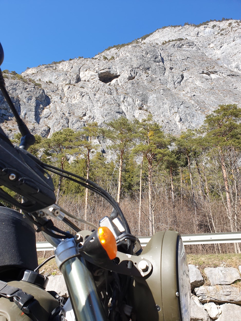 Dort der alten Straße auf dem linken Innufer folgend bis zur Pontlatzer Brücke (Schauplatz der Kämpfe von 1703 und 1809) und schließlich über die Inntal-Bundesstraße wieder heim. 240 wundervolle Kilometer. Und vor der Garage das verdammte Salz vom Aluminium gewaschen. Ich bin froh, dass es jetzt regnet und das "G'schloder" wegwäscht. Hoffe ich zumindest.