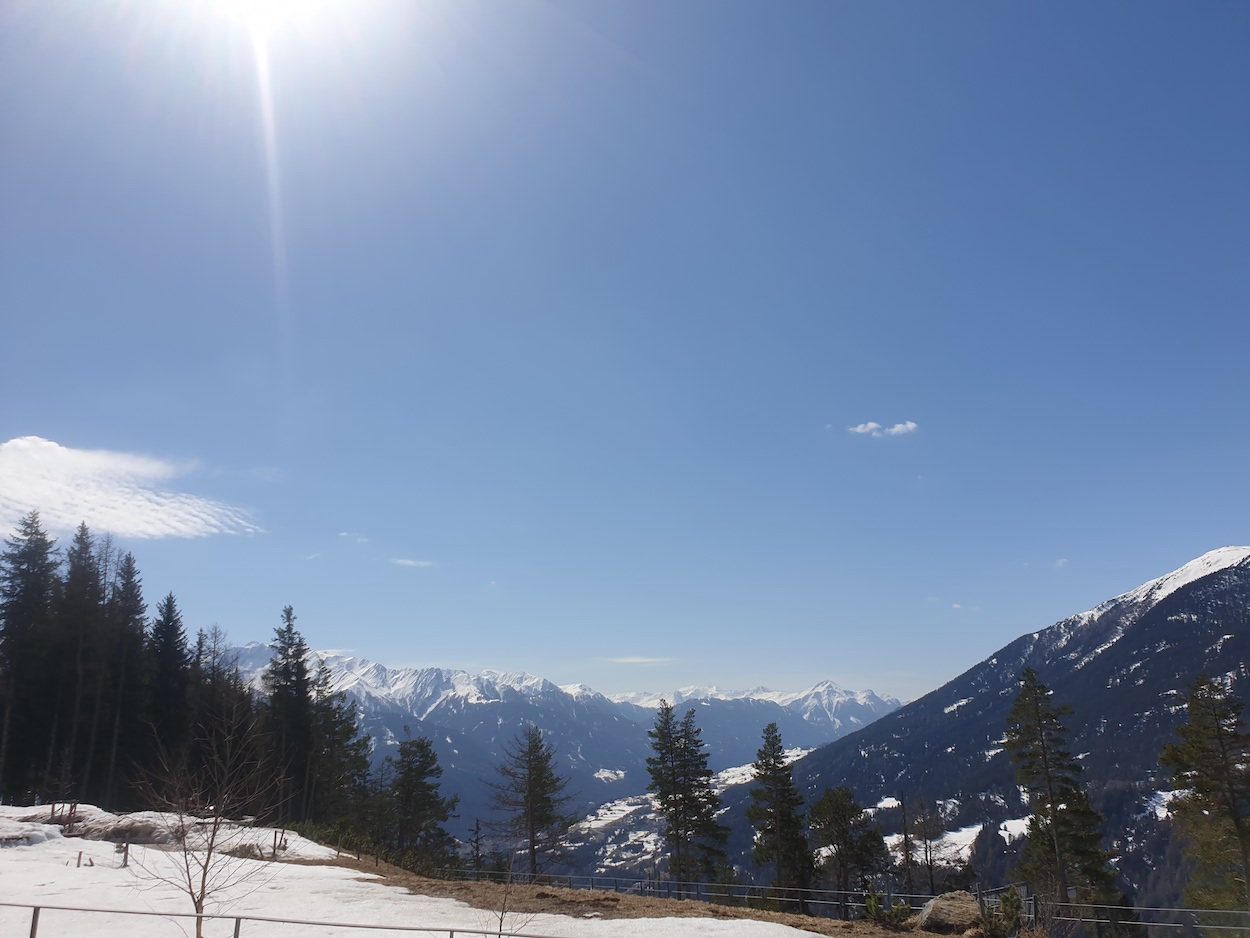 Und dann aber mit Schmackes durch das Obere Gericht Richtung Samnaun. Mein Versuch, an der Zollstation an der Kajetansbrücke hilfreiche Hinweise wegen Grenzübetritt und etwaig folgenender Quarantäne-Verpflichtung auf der Rückreise zu erhalten, blieb erfolglos. Die Grenzer hatten wohl Mittagspause. Also raufgefahren über Fiss und mir mit einem Innsbrucker Alfa Romeo GT1600 ein kleines Rennen geliefert, bis wir auf die Grenzstation gekommen sind. Der Obergefreite des Bundesheeres verwies mich bei meinen Fragen auf die Zöllner, die seinerseits im vollen Ornat seines gewaltigen Amtes jegliche Aufklärung hinsichtlich Coronaregelungen als nicht in seiner Zuständigkeit ansah. Und mich wieder zurückverwies an den Grenzposten. Also wieder an das Grenzhäusl und ein Korporal wimet sich nun meiner. Als ich ihn aufgrund seines Ärmelabzeichens als Angehörigen des Kärntner Führungsbataillons ansprach (und auch noch mit dem richtigen Dienstgrad), war er sichtlich erfreut und stellte mir einen Zettel aus, "dass eh alles in Ordnung sei". Und funkte noch die Zollstation Kajetansbrücke an, aber die war immer noch nicht hinreichend geatzt, offenbar.