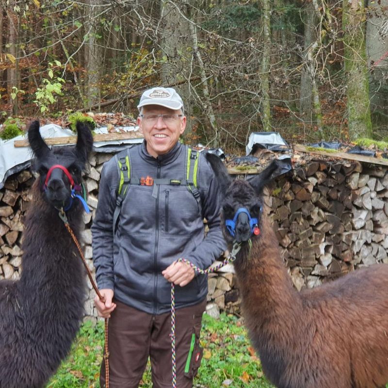 Hallo, meine Liebste ist leidenschaftliche Strickerin und kann von meiner Schwester demnächst frisch geschorene Lamawolle bekommen. Da sie selber aber nicht spinnen kann sind wir auf der Suche nach jemand, der so was macht, vielleicht so 4-5 kg. Die Wolle -Lamas ist/stehen bei Allmersbach am Weinberg-Backnang,so grob. Es sind Rolf und Kurt,die Wolle lassen müssen-der nette Mann in der Mitte ist der Freund meiner Schwester.