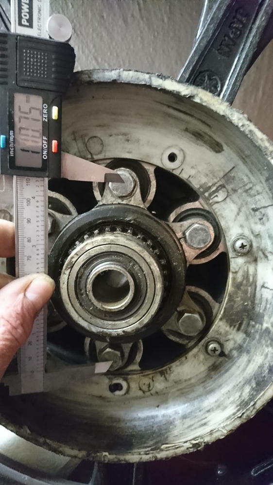 Ich dachte erst dass es am Halter für den Bremssattel liegt und der an der rechten Seite der Scheibe anliegt. Viel Platz ist da nicht. Ich konnte eine Scheibe 0,5 mm zwischen Halter und Buchse ( radseitig schieben) . Ohne Erfolg.
