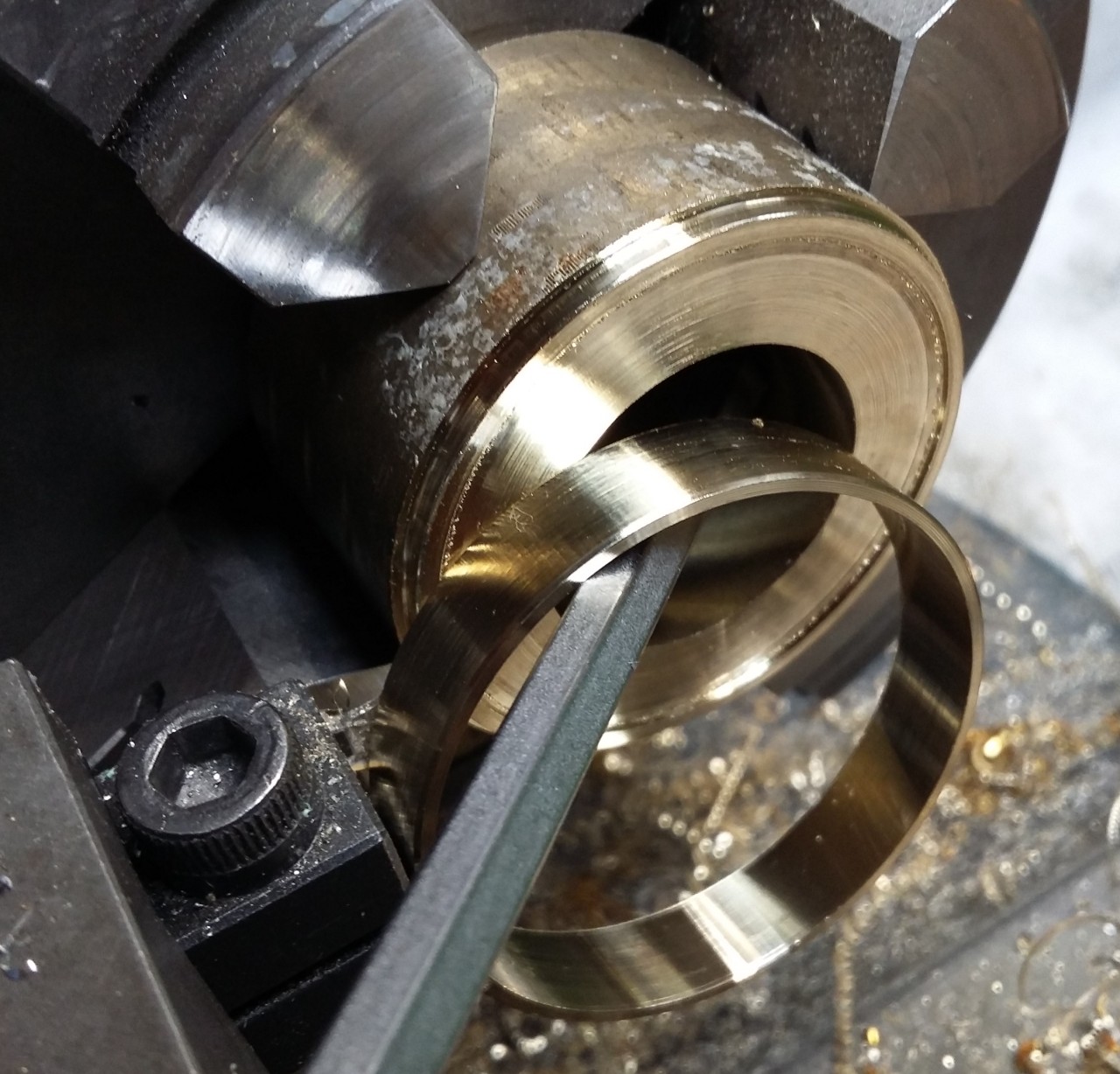 Hab meine fertig gemacht. Den eingeschrumpften Ring hab ich aus Alubronze gedreht wie ich sie auch für Ventilsitze nehm, und nach dem Einschrumpfen noch ein paar Hundertstel rausgedreht, damit sie auch rund ist. Laufspiel dürften so 3/100 sein.