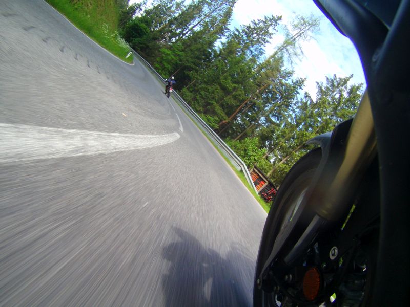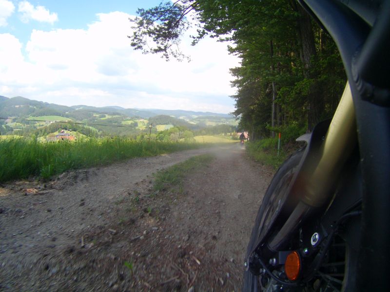 Jo, ist nicht schlecht, ich hatte kurz auch mal ne alte Alpentranse, US-Re-Import, Goldfelgen, schwarzer Motor.gatsch.hupfa hat geschrieben:Und die Alp - kann nur sagen: Ziemlich universell! Auf der Autobahn fährt man sehr relaxte 130 / 140, auf Bundesstrassen folgt sie stur jeder Linie nach, die 50 PS reichen allemal, wenn man sie ordentlich dreht kommt sie auch den T7 nach. Kleine buckelige Landstrassen bringen die sehr weich wirkende Federung so gar nicht aus dem Gleichgewicht, sie schaukelt auch niemals auf wenns durch wellige Kurven geht. Irgendwie hat man den Eindruck, in einer ruhenden Kapsel zu sitzen und unter einem arbeitet das Fahrwerk vor sich hin. Dieser Eindruck verstärkt sich nochmal wenns in den Schotter geht, die 20 cm Federweg scheinen alles glattzubügelt, gerade wenn man stehend fäht, und ja, das geht recht gut wenn man den Lenker ordentlich nach vorne/oben dreht. Durchgeschlagen hat sie mir einmal ganz sanft, als ich eine Querrille übersehen hab. Diesen vollkommen unaufgeregte Fahrverhalten wird durch den weich einsetztenden Motor gut ergänzt, man ist z.B. bei Spitzkehren niemals überfordert. Selbst bei der an sich zu langen Orginalübersetzung. Ich hatte mal eine Alp 650, die hat gradezu schwerfällig dagegen gewirkt.