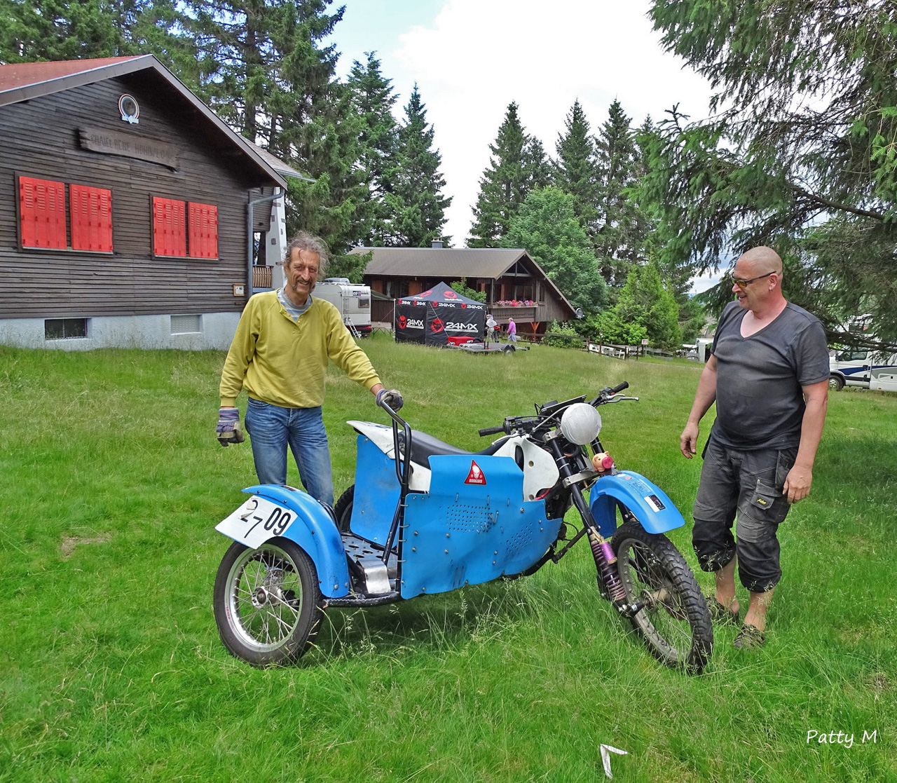 Kurz vorher war noch ein (VMC?-)Zabelgespann aufgetaucht mit einem Satz französischer Jünglinge, die näxtes Jahr crossen wollen und vorab einfach mal ein bißchen trockenüben. Gute Idee. Leider habe ich von den Herren keinerlei Zeiten zum Vergleich in den Ergebnislisten gefunden, aber optisch machten sie jedenfalls gut was her. Mit dem 700er-Zweitakter dürfte das auch recht ordentlich vorangegangen sein.