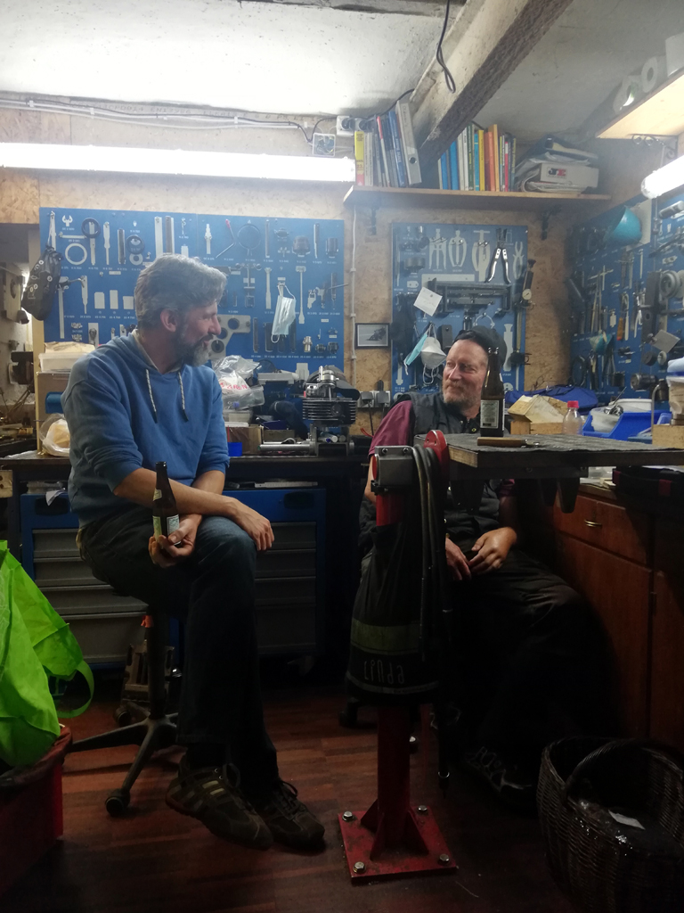 Zum Motor sind wir nicht mehr groß gekommen, da wurde die Zeit zu knapp. Aber den wunderhypschen neuen Ventiltrieb haben Didi und ich noch montiert. Ein wenig Anpassungsarbeiten hier und da gab es noch, hochpräzise Fahrwerksvermessungen, das war´s. Mike wird jetzt einen Dummy für die Lageraufnahme der Kurbelwelle drehen, dann kann geguckt werden, wie die Kurbelwelle ausdistanziert werden muss.