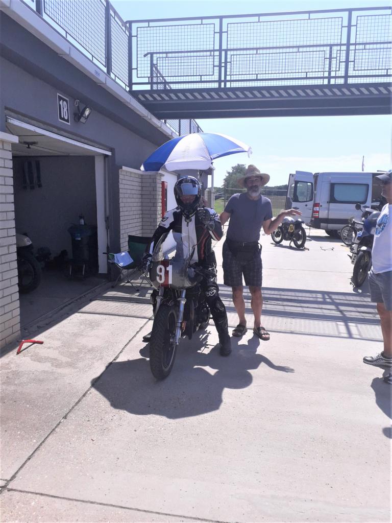 Heiss warens, die 3 Tage, auch ein wengerl schwierig mit den Reifentemperaturen und den Vergasern. Gerade der kleine Schreihals wollte am Montag bei den Trainigs gar nicht so recht laufen, einiges an Ümdüsen war notwendig.