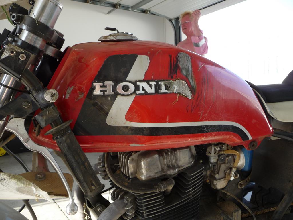 Bei der 4xx wurden schon mal der Tank, Verkleidung, Vergaser und (Motor)-Seitendeckel demontiert... Das Öl hat bei der Hitzeschlacht ziemlich dunkel geworden, das Getriebe lässt sich nur noch zwischen 3ten und 5ten schalten :omg: nicht gerade vielversprechend...