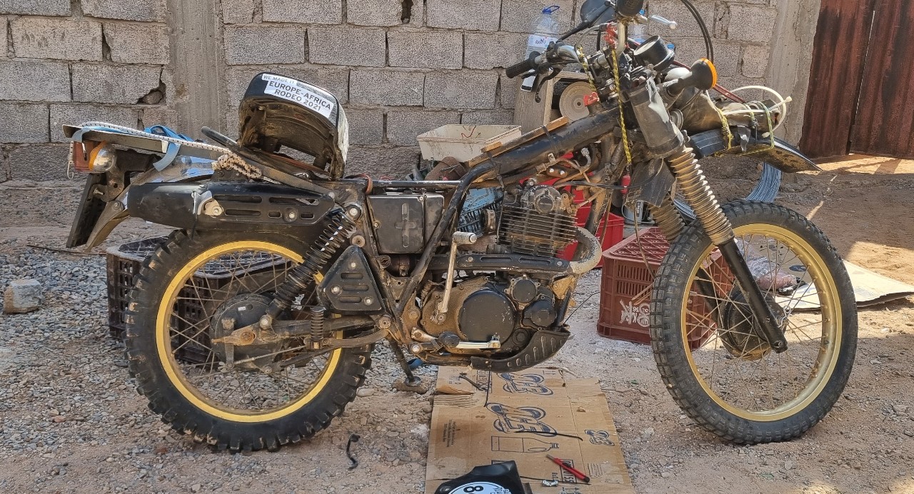 keine ahnung, ob es evtl. hilft. ich fand gerade ein altes foto, wo meine xt vor etlichen jahren vor einer werkstatt sta nd. meine gabelklemme war gebrochen und ein ähnliches teil wurde dort mit flex und bohrmaschine passend gemacht. damit kam ich problemlos nach hause.ich erinnere mich nicht mehr genau, wo das war. vermutlich erfoud. auf dem foto ist die telefonnummer über dem garagentor zu erkennen.