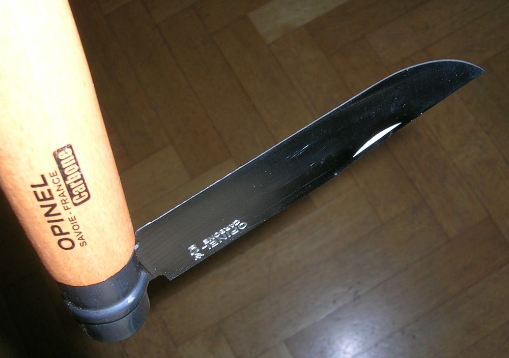 Das Karbonstahl-Opinel ist nicht brüniert, es rostet.