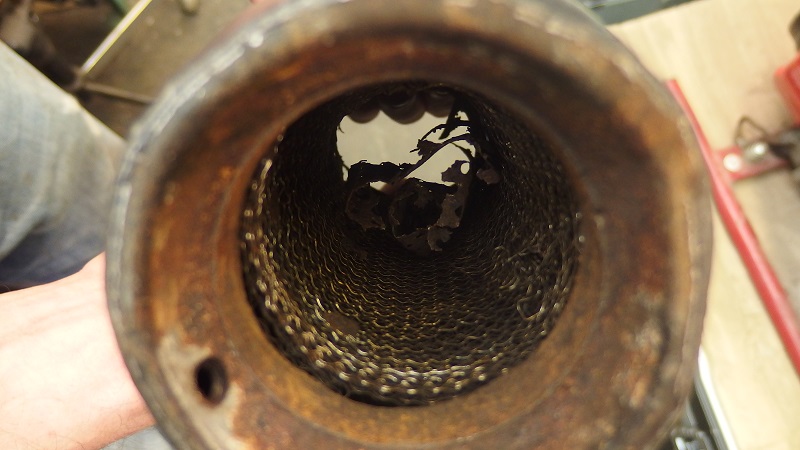 Ich hab den Zylindrischen Teil abgetrennt, neue Dämpferwolle und Lochblech eingebaut und wieder verschweißt.