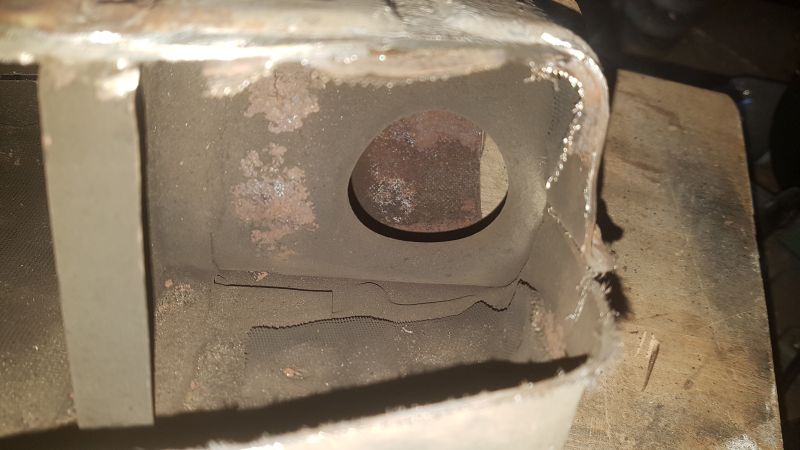 Ich hab nochmal geschnitten, und auf der Innenseite das untere Achterl vom Endtopf abgenommen, um da einen Blick reinzuwerfen.