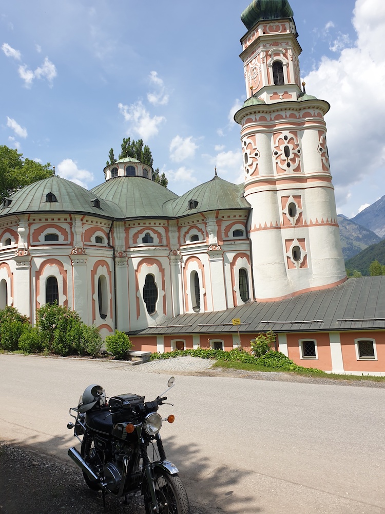 Eigentlich hatte ich mir vorgenommen, um Mittag wieder den Weg nach Hause zu nehmen, weil doch die Ferien zuende gehen. Aber Bundesstraße und Autobahn waren gesteckt voll. Also habe ich mich nach Süden ("antizyklisches Verhalten") verrollt und bin in Blumau seit ich weiß nicht wie langer Zeit mal wieder die 15 geilen Kehren nach Steinegg hinaufgefahren. Und sagen wir mal so: eher zügig. Später sollte mich ein WhatsApp von Jürgen erreichen,ob ich da gerade durch Steinegg gefahren sei ...