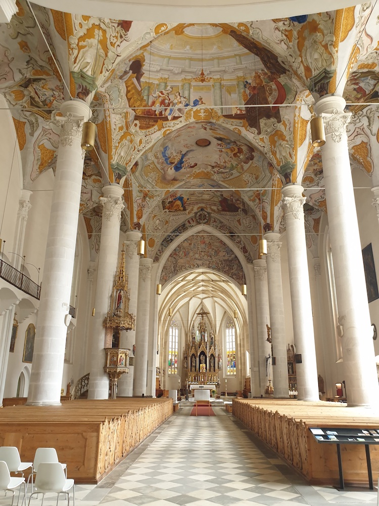 Also über den Brenner, allein, in morgendlicher Frische. Aber in gemessenem Tempo, denn schon waren fünf Spots besetzt mit Radarpistolisten, wohlgemerkt nur bis Matrei. Dann weiter nach Süden, den Weg kennt ihr alle aus mehrfahcen Schilderungen. Bis kurz vor Klausen, dort scharf rechts hinauf nach Velthurns (richtig, da war doch das Renaiisanceschloss!), aber dieses schmählich beiseite lassend und nach Latzfons weiter. Auch da waren wir schon, als wir nach Schloß Gerstein und weiter durch das Tinnebachtal nach Klausen wollten . Heute ging es am Ortsende von Latzfons rechts aufwärts erstmal Richtung Latzfonser Kreuz. Das erreicht man zwar nicht per Motorrad, aber immerhin kommt man bis zum Ende der für Weltmeisterschaften zugelassenen Naturrodelbahn dort und die Ausblicke in die Dolomiten, die sich immer wieder bieten, sind wahrlich spektakulär.