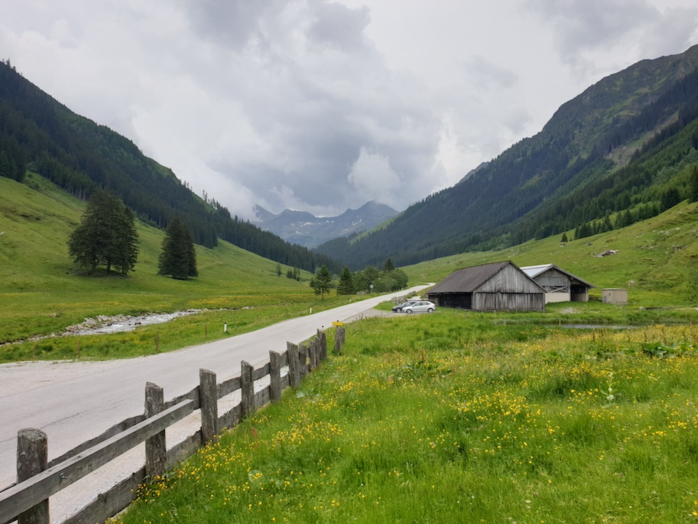Blick von St. Nikolai auf den Sölkpass, voller Gewitterwolken. Wir sind aber mehrheitlich trocken geblieben...