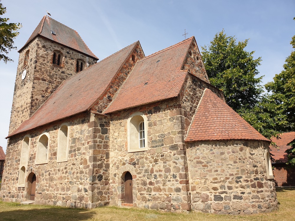Weiter ging die Reise nach Torgau, der Stadt, wo sich Russen und Amerikaner 1945 erstmals die Hände reichen konnten. Und weiter bis kurz hinter Herzberg, wo ich mich dann Richtung Norden auf keinen und kleinsten Straßen "vorgearbeitet" habe. Dabei kam ich auch durch Gebersdorf, wo eine wirklich bildschöne spätmittelalterliche Kirche stand. Ich habe abgehalten, mit das Kirchlein von außen angesehen und wurde von einer Anwohnerin zunächst recht schroff gefragt, was ich da machen würde.