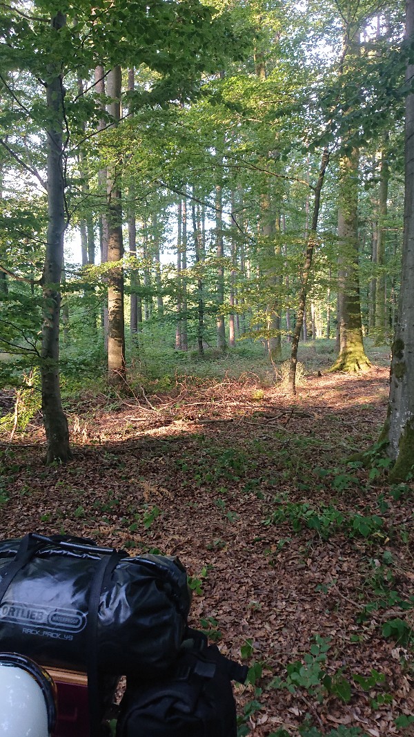 Wald am Horizont, nur noch 30 Km bis Schengen. Der Tag war eigentlich schon gelaufen. Offroad dürfte es auch schon fast gewesen sein.