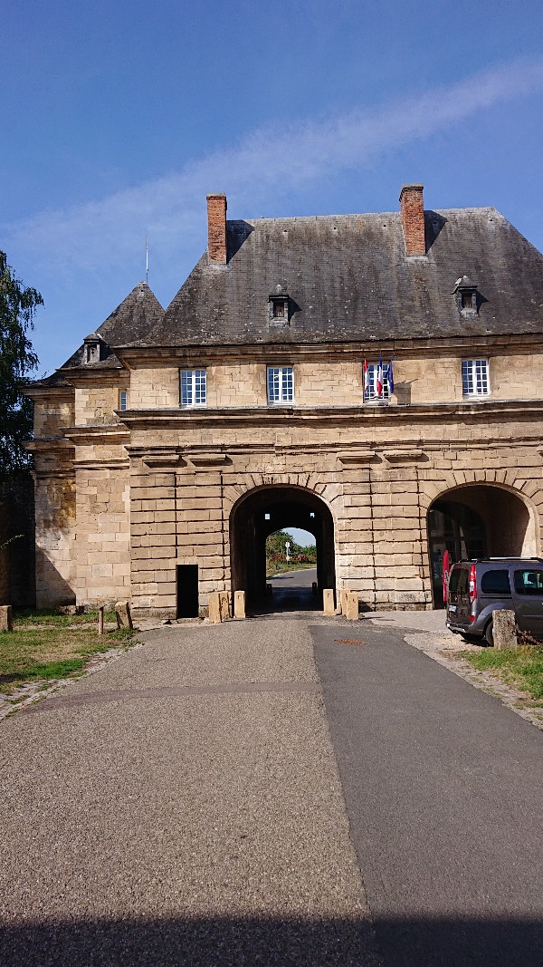 Bei dem kleinen Ort Aboncourt führte nochmal ein kleiner Abschnitt über einen Feldweg. Der führte auf eine gemäht Wiese und von dort auf einen weiteren Feldweg leicht bergab an einer Weide vorbei. Total harmlos. Am Übergang zwischen Wiese und Feldweg waren große Schlaglöcher, die mit Bruchsteinen gefüllt waren. Wie schon hunderte zuvor. Die große Stelle passierte ich ohne Mühen, war sogar wieder mal überrascht wie stabil die Enfield fährt.