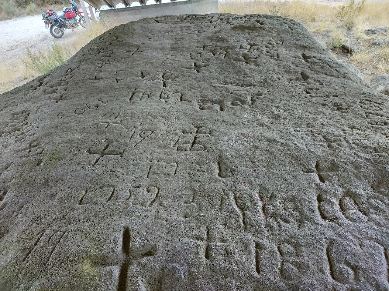 Irgendwann erreiche ich wieder einen Asphaltweg und höre ein verdächtiges Klappern. Angehalten und genau hingeschaut, hat sich die Werkzeugtasche unter dem Sitz losgerappelt und schliff schon am Reifen. Hab sie rausgefischt und nachgeschaut, Hmm, die kleine Wasserpumpenzange fehlt! Zum Glück lag sie in der Nähe, ich hoffe, ich hab nicht noch mehr verloren, aufgefallen ist mir jedenfalls nichts.