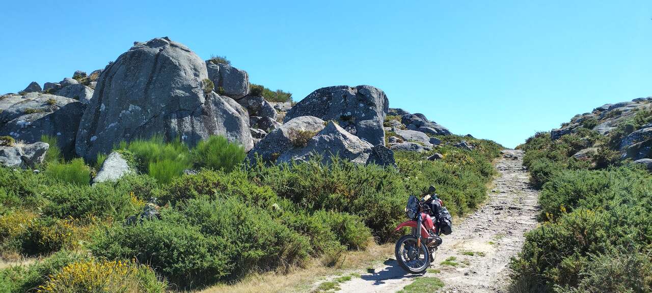 Schnell war ich wieder in Portugal, wo der Track besser wurde. Also, spannender. Grobes Gestein, viel Holz und schöne Ausblicke auf die Landschaft.
