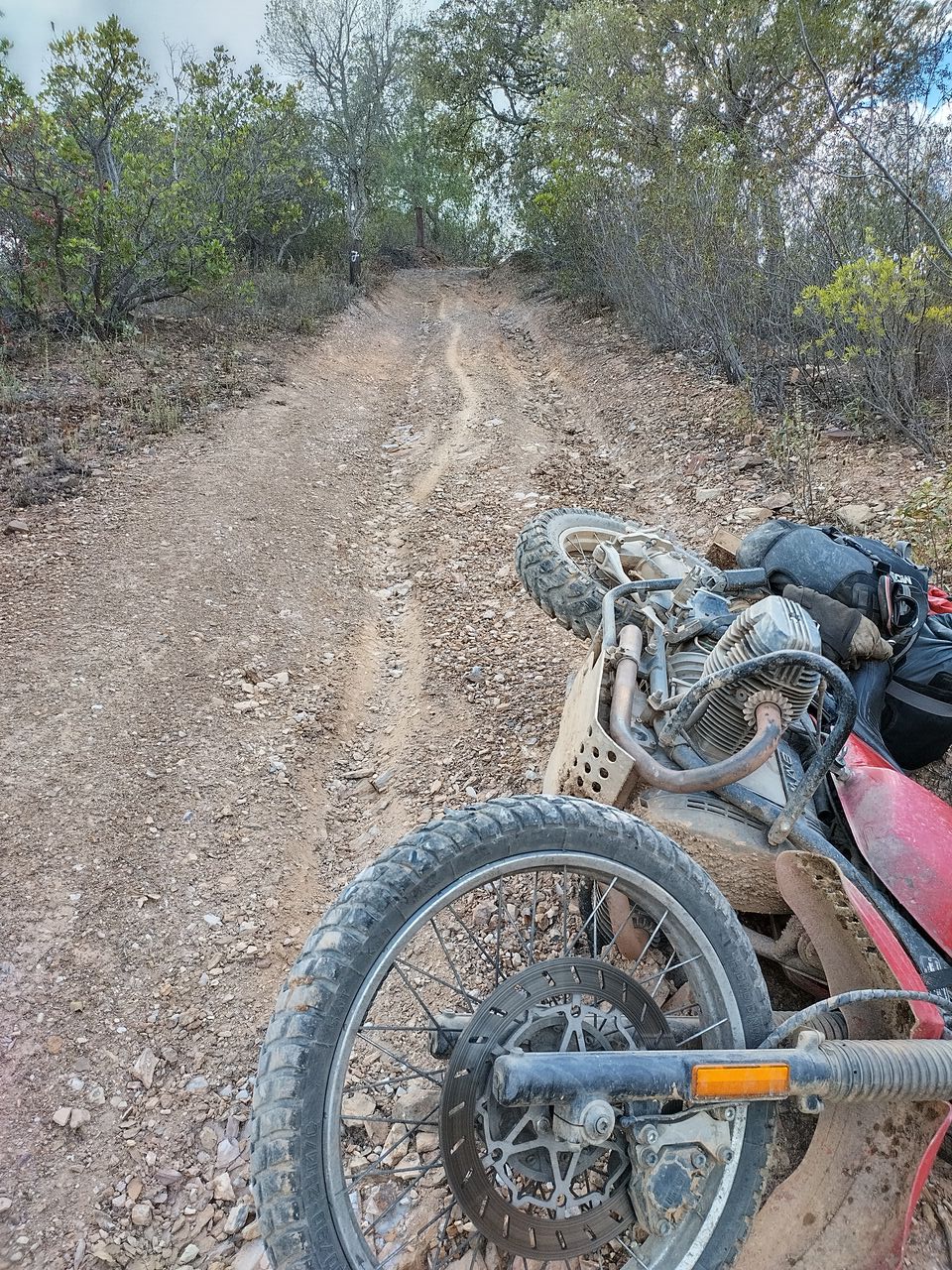 Einmal verlasse ich versehentlich den Track, aber ein anderer Weg führt laut GPS wieder zurück auf den Track. Fahr ich halt den. Netterweise ist der garniert mit einer heftigen, langen Steigung mit losem Geröll. Da hilft der Boxer. Wie ein Stier marschiert das Trumm los, der Motor röhrt, das Fahrwerk fahrwerkt und der Fahrer ist glücklich!