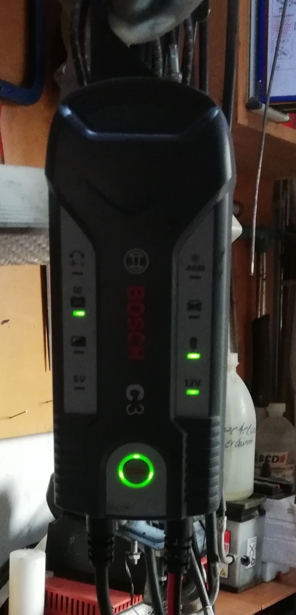 Die Batterie meiner Solo-SR gibt mir Rätsel auf. Hat definitiv keinen Saft (11,3V), aber wenn ich sie an dieses Zauber-Ladegerät hänge, leuchtet dieses nach wenigen Sekunden grün. Wieder eingebaut, kann ich einmal schlapp blinken, dann isse wieder schlapp.