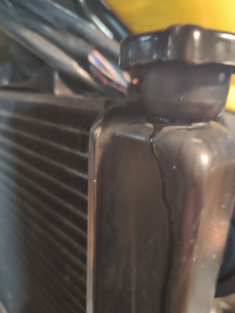 Hi, bei der Triumph Speed Four scheint der Kühler am Einfüllstutzen einen Haarriss zu haben.