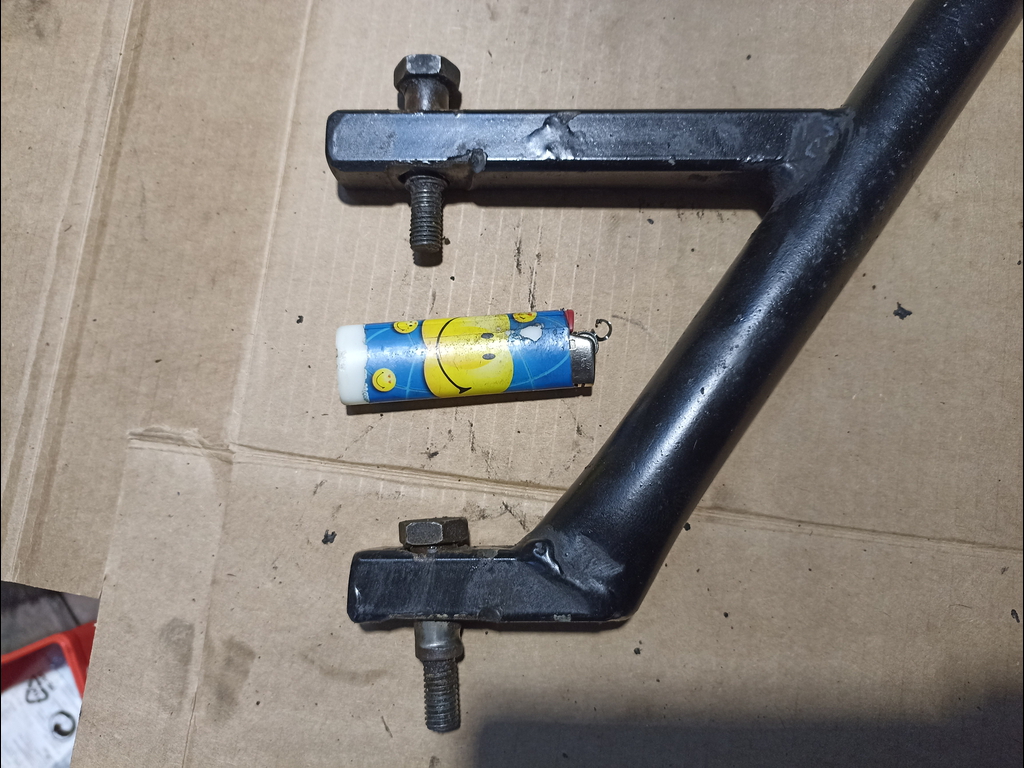 2 Stück 4kant für den Hauptständer und die große Lasche steht senkrecht hinter dem Fußrastenhalter.