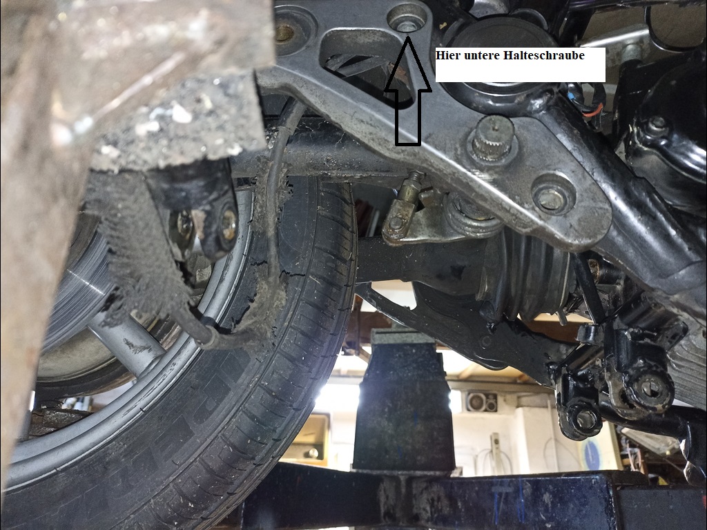 Das mies gebogene und stumpf aufgeschweißte Blech nach oben ist die einige Verdrehsicherung und Momentabstützung. So ein Pfusch.