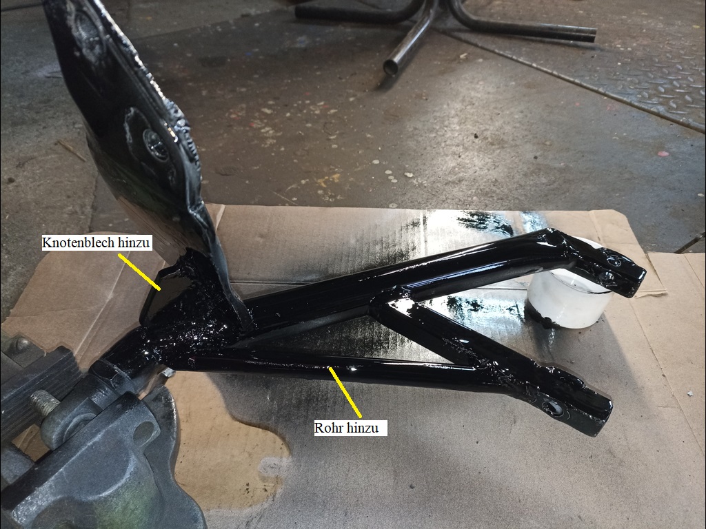 Noch auf der Aussenseite ein Knotenblech angebracht und auf den Rat vom Oldman ein Rohr eingeschweisst.