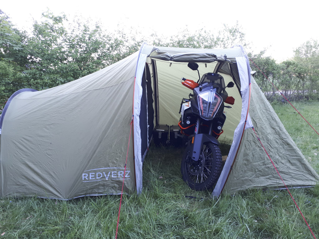 Vielmehr empfiehlt er dem zeltenden Motorwanderer die separate Plane, so denn ein Schutz des Fahrzeuges sein muss.