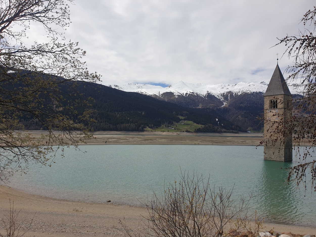 Im Oberland waren alle Obstplantagen mit vereisten Pflanzen zu sehen und man darf hoffen, dass wenigstens ein Teil der bereits in Blüte stehenden Pflanzen im Herbst auch tragen. Weiter gings unter dem titanischen Bergsturz-Abbruch an der Südflanke des Tschirgant nach Westen und entlang der Innschlucht über Imst nach Zams. Dort stehen die Berge wirklich schon arg nahe...
