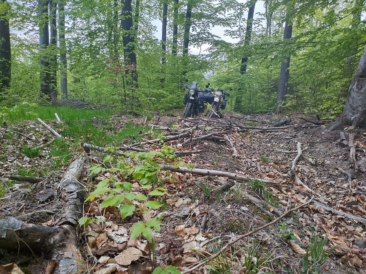Auch hier hat sich die Enfield wacker geschlagen, nur einmal ist sie weggerutscht und einmal musste sie ob ihrer Bodenfreiheit vor einem Baumstumpf kapitulieren.