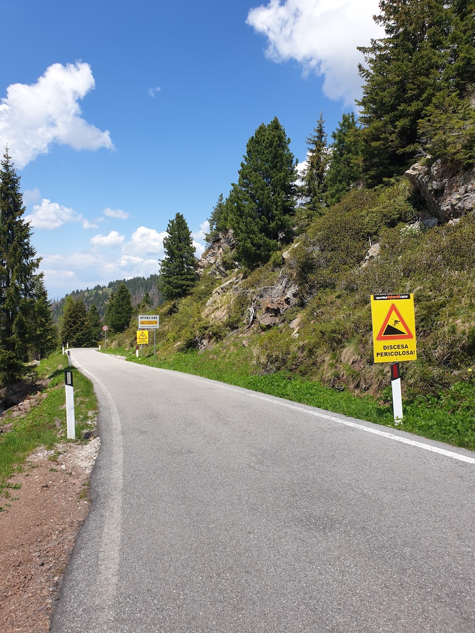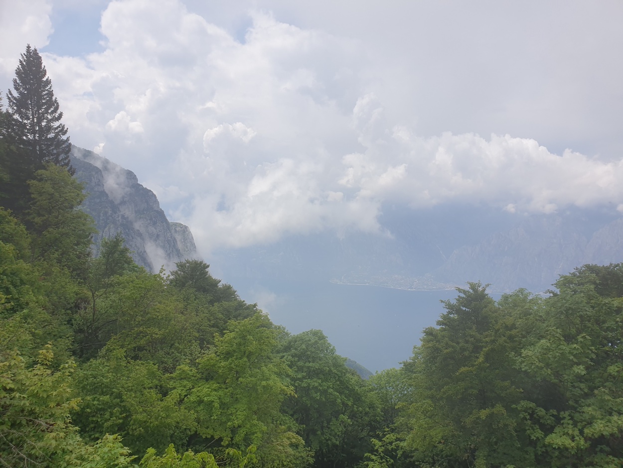 Rovereto passiert und in Mori die Abzweigung nach Brentonico genommen. Von Süden braute sich dunkles Gewölk zusammen, aber wie so oft waren die kleinen Straßen leer und ich konnte die XS fröhlich laufen lassen. Der viele Regen der vergangenen Tage und Wochen hat auch dazu geführt, dass die Flanken des Monte Baldo sich wie eine Grüne Hölle präsentieren. Kommt man aber über die Baumgrenze, dass wird es nicht nur kühler, sondern der Wind wurde auch immer stärker.