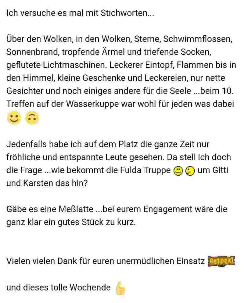 Mit euch war's wieder ein sehr schönes Treffen auf Wasserkuppe. Vielen lieben Dank.