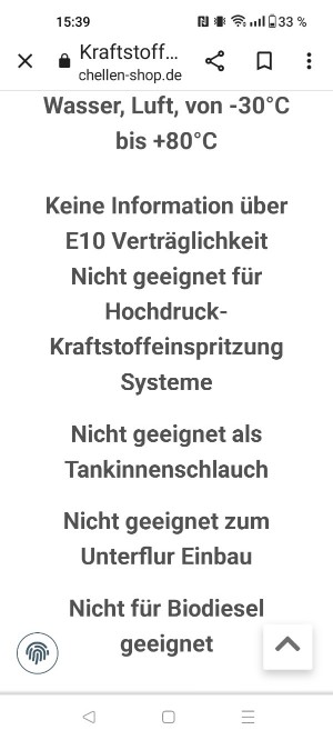 als Intankschlauch geht der schonmal garnicht, weil die CR Außenhülle nicht benzinbeständig ist, die dient ja dazu den Schlauch witterungsfest zu machen