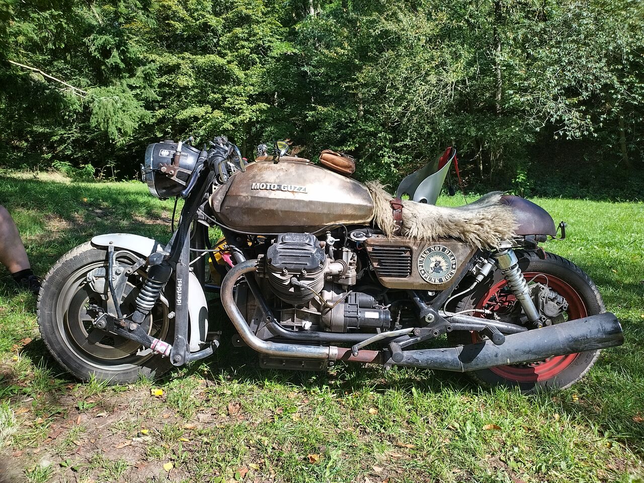 Die Elektrik ist, ähem, spannend. Ab und zu geht die Ladekontrollleuchte nicht aus, und unterwegs fiel mal die komplette Beleuchtung aus. Dass es gerade in der Dämmerung war, hat ein wenig für Anspannung gesorgt. Zum Glück war es nur ein abgefallener Stecker im Cockpit. Wieder draufgesteckt, konnte ich entspannt weiterfahren. Der Hauptscheinwerfer wackelt ziemlich, aber das mus bestimmt so. Guzzifahrer fahren sicher nicht im Dunkeln.