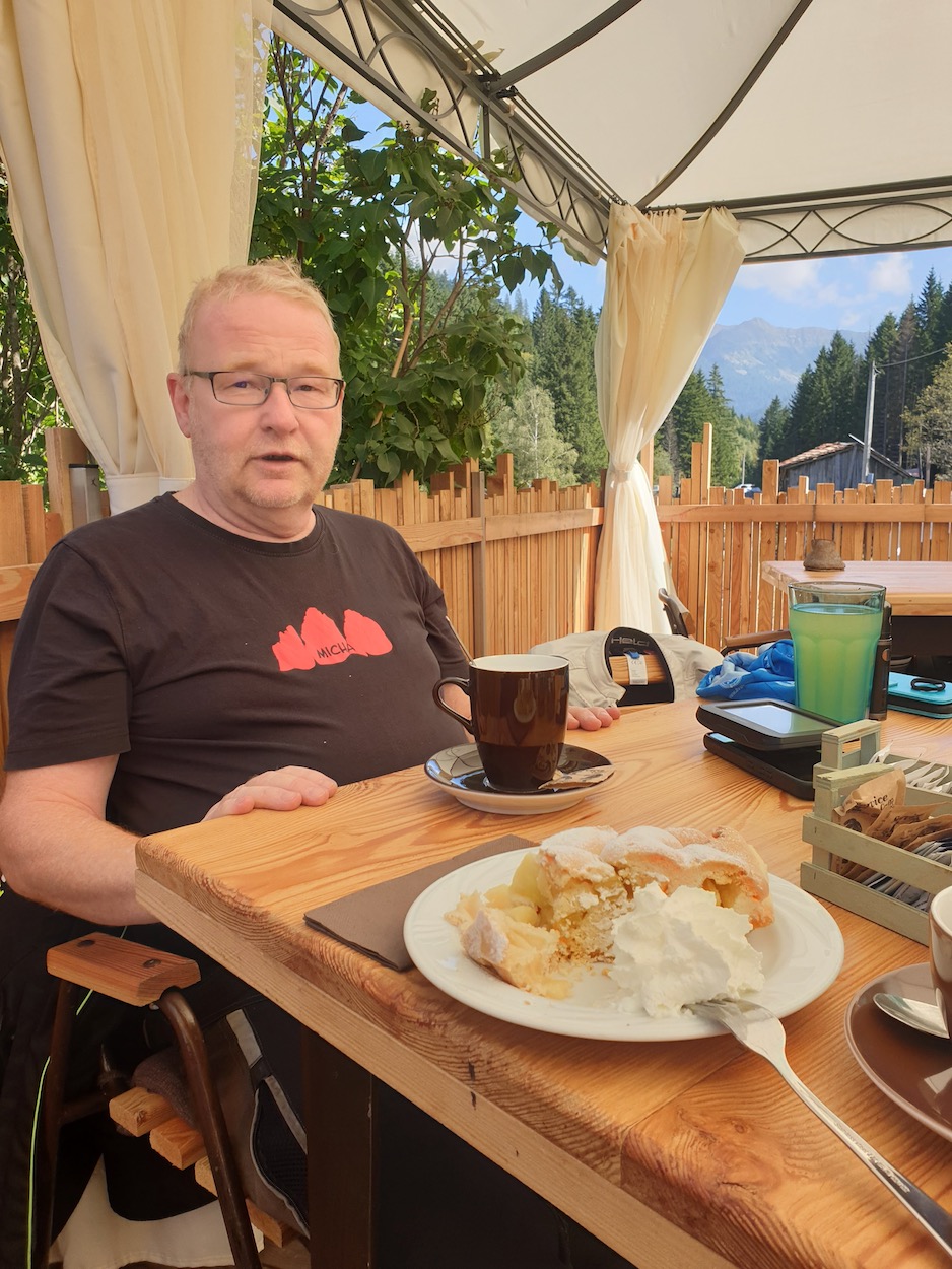 Alle haben scheints gut geschlafen und trudeln zum Frühstück in der getäferten Stube ein. Ein gutes Frühstück, dass sogar die für Markus überlebenswichtigen Eier in hinreichender Menge und Darreichungsform beschaffen kann. Nachdem wir gesten den nordöstlichen Teil mit dem Ausflug ins Ladinische bemacht hatten, geht es heute eher in den westlichen Teil Südtirols mit einem Abstecher ins Trentino.