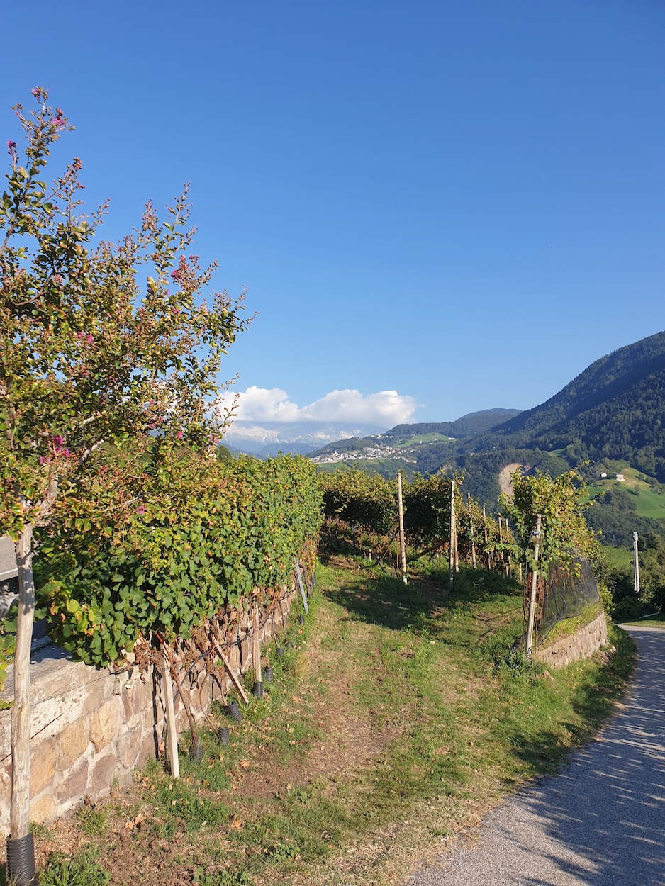 Nun galt es der Straße nach Jenesien zu folgen. In Flaas, beim Gasthaus Tomanegger, war aber erstmal Mittagspause (leicht verspätet zwar, aber doch!) angesagt. Auch das ist ein Ort, der durch seine Aussicht (und seine Küche!) wirklich bemerkenswert ist.